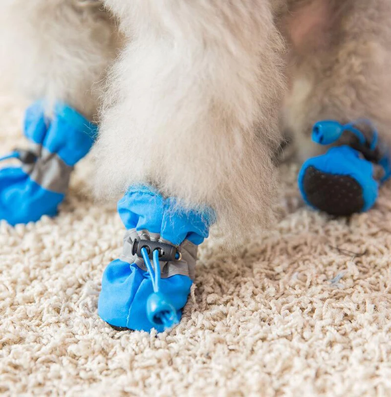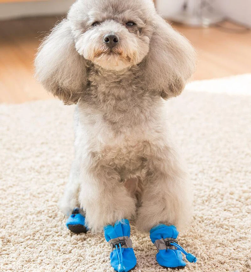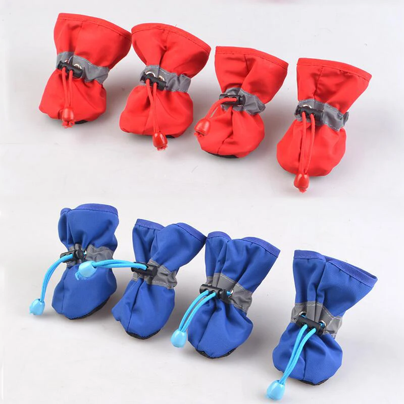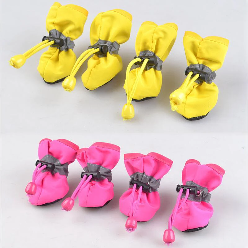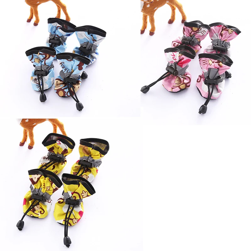 4pcs/set Drawstring Non-slip Pet Dog Shoes Toddler Teddy Waterproof Shoe Cover Adjustable Warm Solid Color New Dog Rain Boots