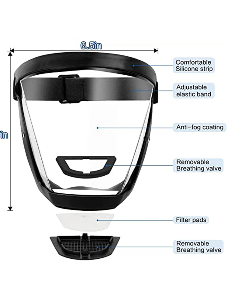 Multi-Purpose Dust & Germ Protective Mask Anti-fog PM2.5 Labor Protection Full Face Shield with 10pcs Filter Cotton Full Facial Protection from Droplets, Saliva, Splash, Oil, and Dust.