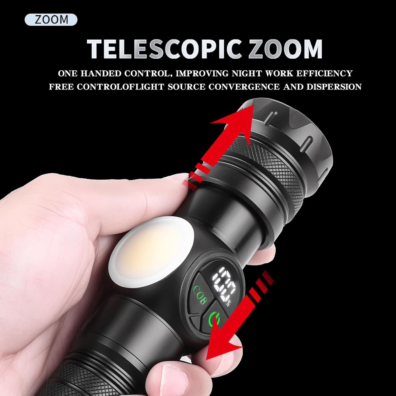 Features: with COB side light, independent press switch, with digital display, tail with magnet