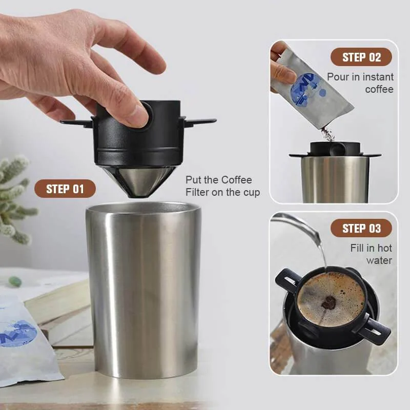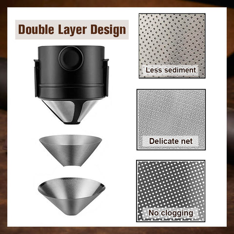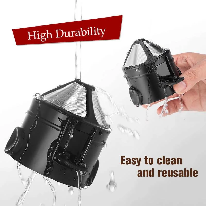Unlike filter papers which can accidentally break easily, this pour over coffee dripper is made of 304 stainless steel and hot resistant PP, guarantee high durability. Easy to clean and reusable.